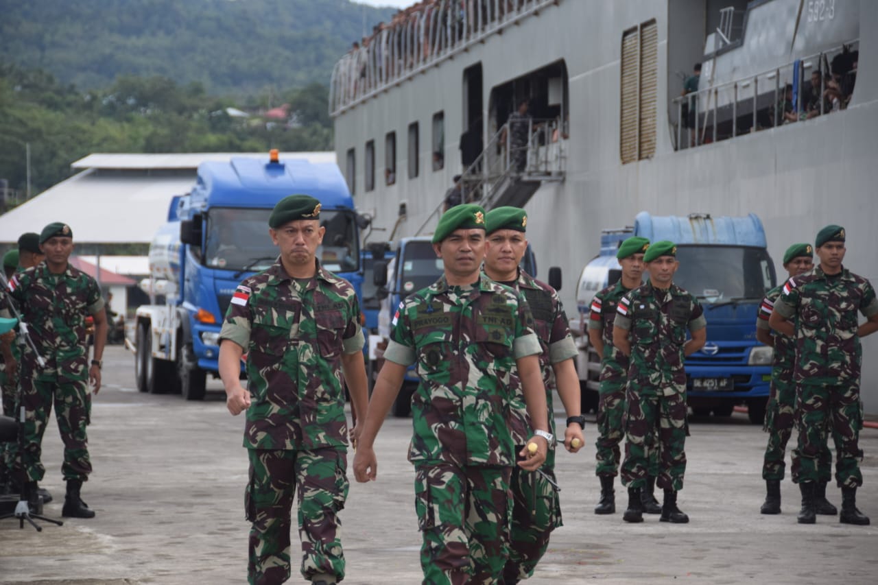 [Ambon] - Pelaksanaan Upacara kenaikan pangkat kali ini sedikit berbeda, sebab ada 3 satuan sekaligus melaksanakannya. Prajurit Rajawali dan satuan yang tergabung dalam purna tugas di bumi cemderawasih masih dalam pelayaran kembali ke satuan, yaitu Yonif 123/Rajawali, Yonif PR 431 Kostad serta Yonif 410/Alugoro. Upacara digelar di Dermaga Saat bersandar di Dermaga TNI AL Kawiri Kec. teluk Ambon Kota Ambon Maluku.