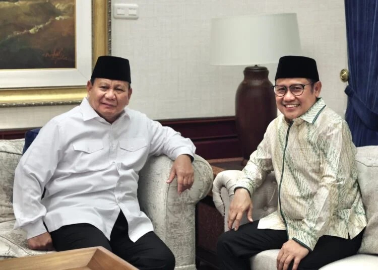 Ketua Umum (Ketum) Partai Kebangkitan Bangsa (PKB) Muhaimin Iskandar atau yang dikenal dengan Cak Imin beserta jajaran partainya tiba di kediaman Ketum Partai Gerindra Prabowo Subianto di Jalan Kertanegara 4, Jakarta Selatan, Jumat (28/4) Sore.